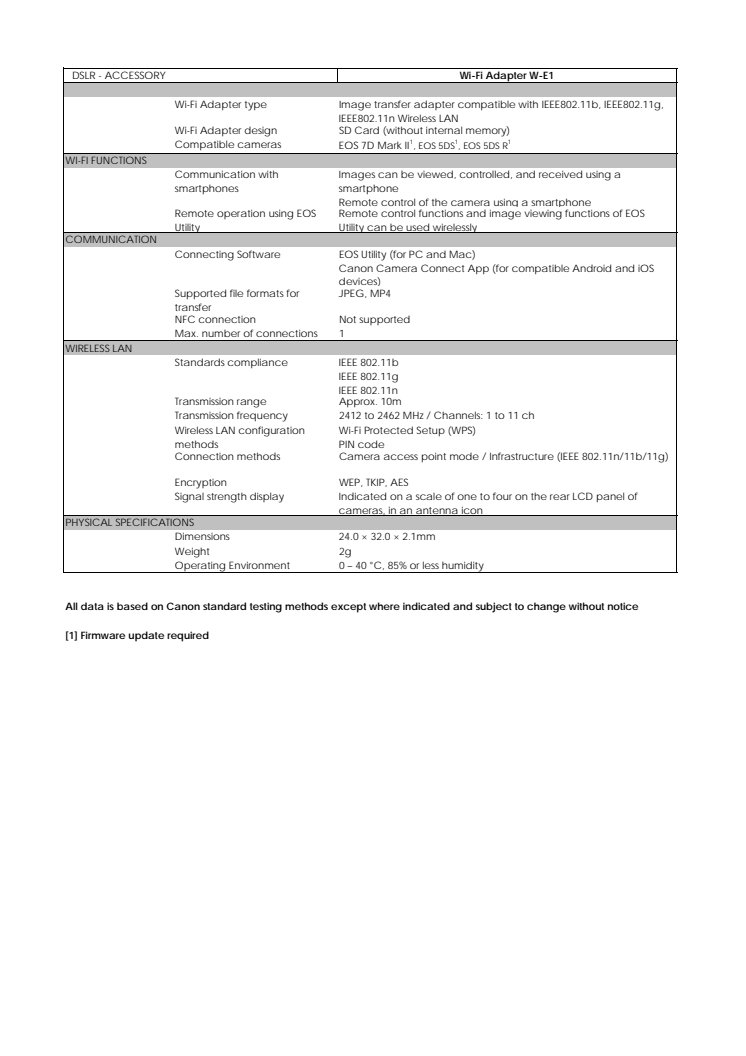 Canon Tekniska specifikationer Wi-Fi adapter W-E1