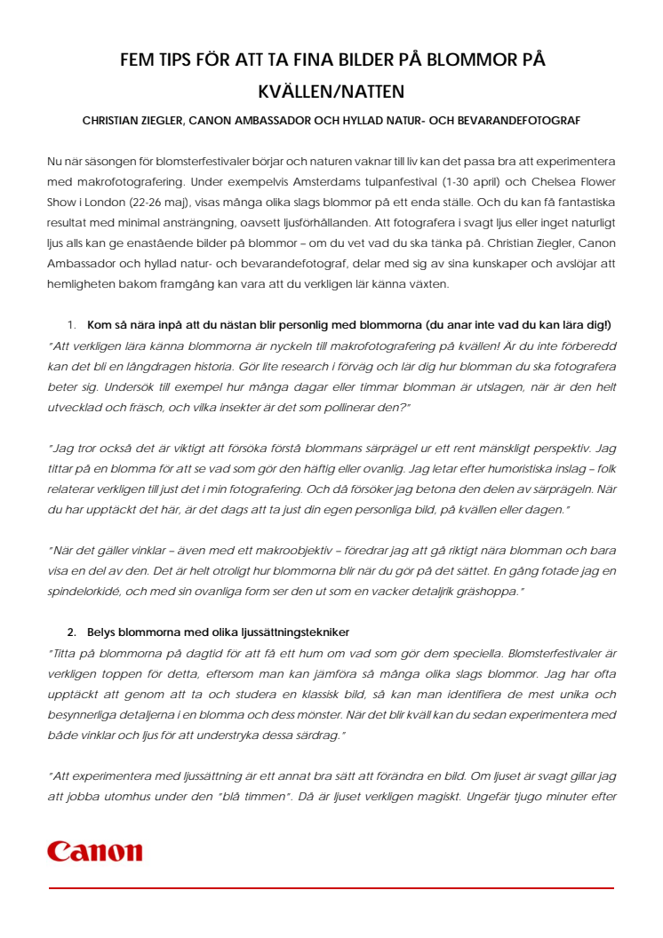 Nu när säsongen för blomsterfestivaler kan det passa bra att experimentera med makrofotografering.Christian Ziegler, Canon Ambassador och hyllad natur- och bevarandefotograf, delar med sig av sina kunskaper och avslöjar att hemligheten bakom framgång kan vara att du verkligen lär känna växten.