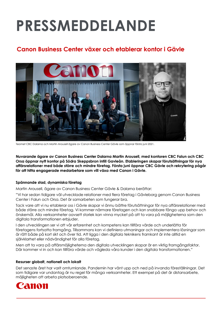 Pressmeddelande_Canon_Canon Busniness Center etablerar i Gävle 210525.pdf