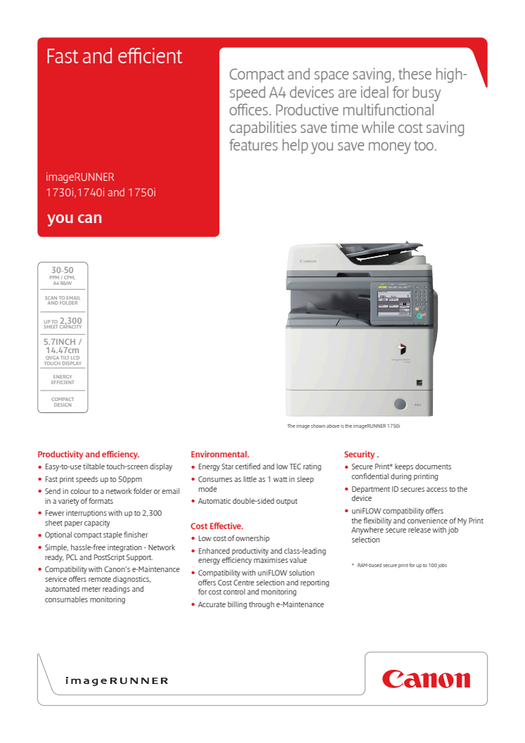 Teknisk specifikation imageRUNNER 1730i,1740i and 1750i