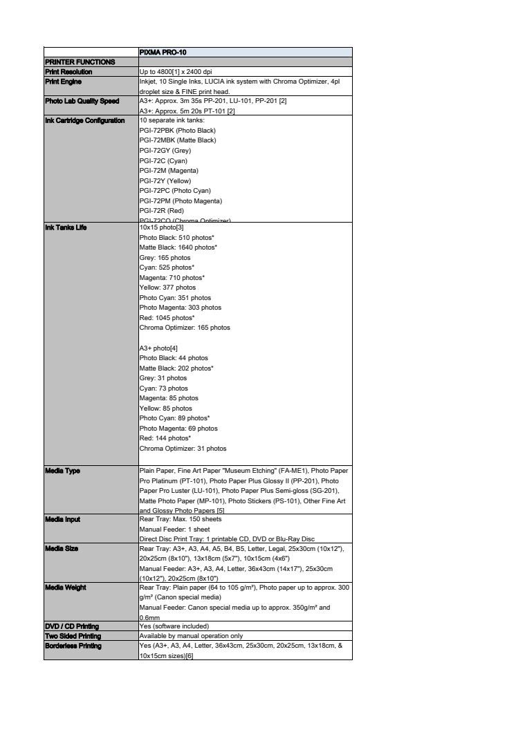 • Canon PIXMA PRO-100 Tekniska specifikationer
