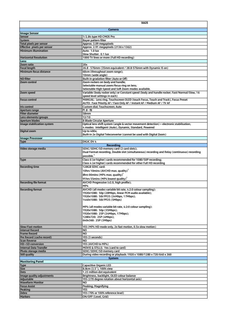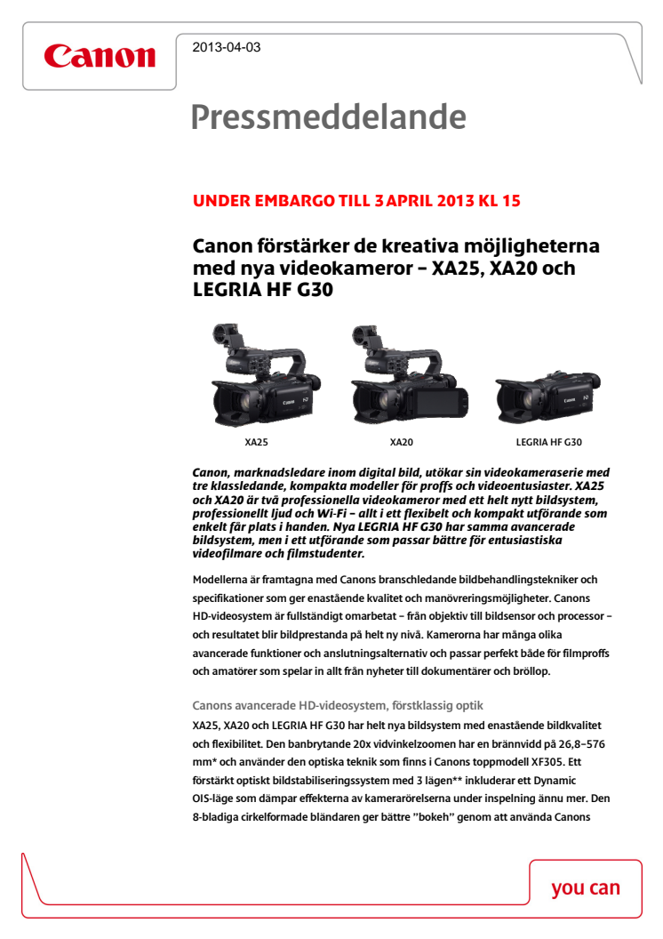 • Canon teknisk förklaring XA25, XA20, LEGRIA HF G30