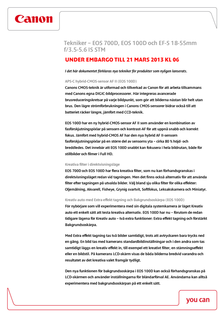 • Canon presenterar EOS 700D och EOS 100D – med plats för större kreativitet