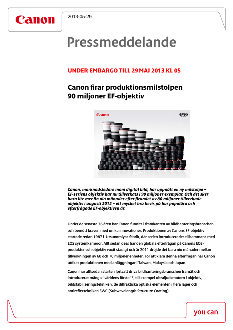 • Canon firar produktionsmilstolpen 90 miljoner EF-objektiv