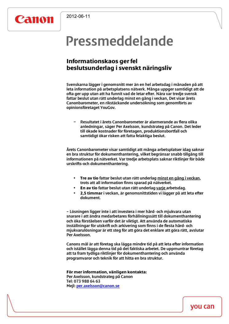 • Informationskaos ger fel beslutsunderlag i svenskt näringsliv