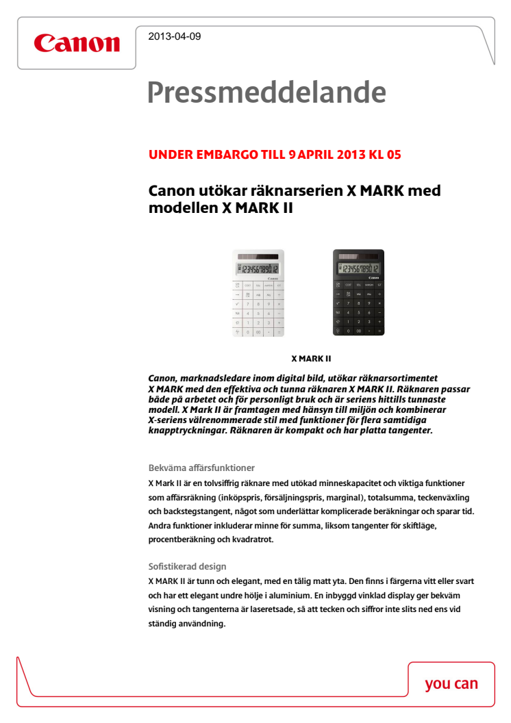 • Canon utökar räknarserien X MARK med modellen X MARK II