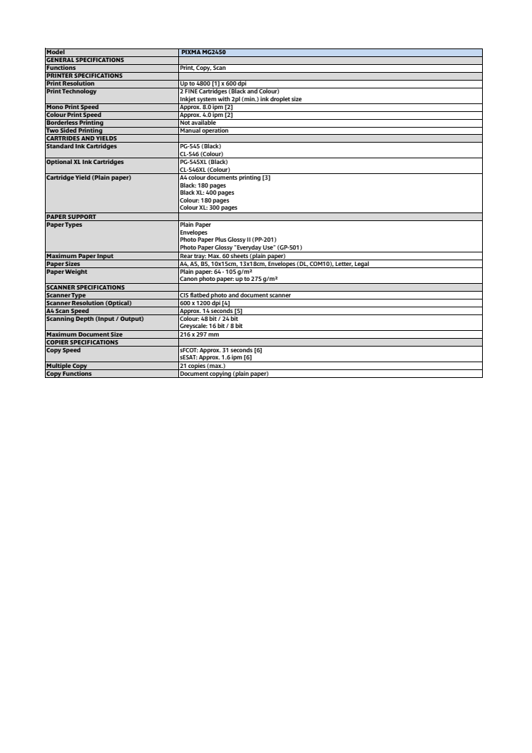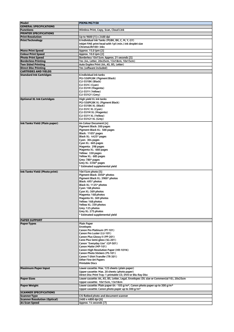• Canon Tekniska Specifikationer PIXMA MG3550