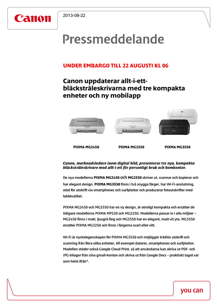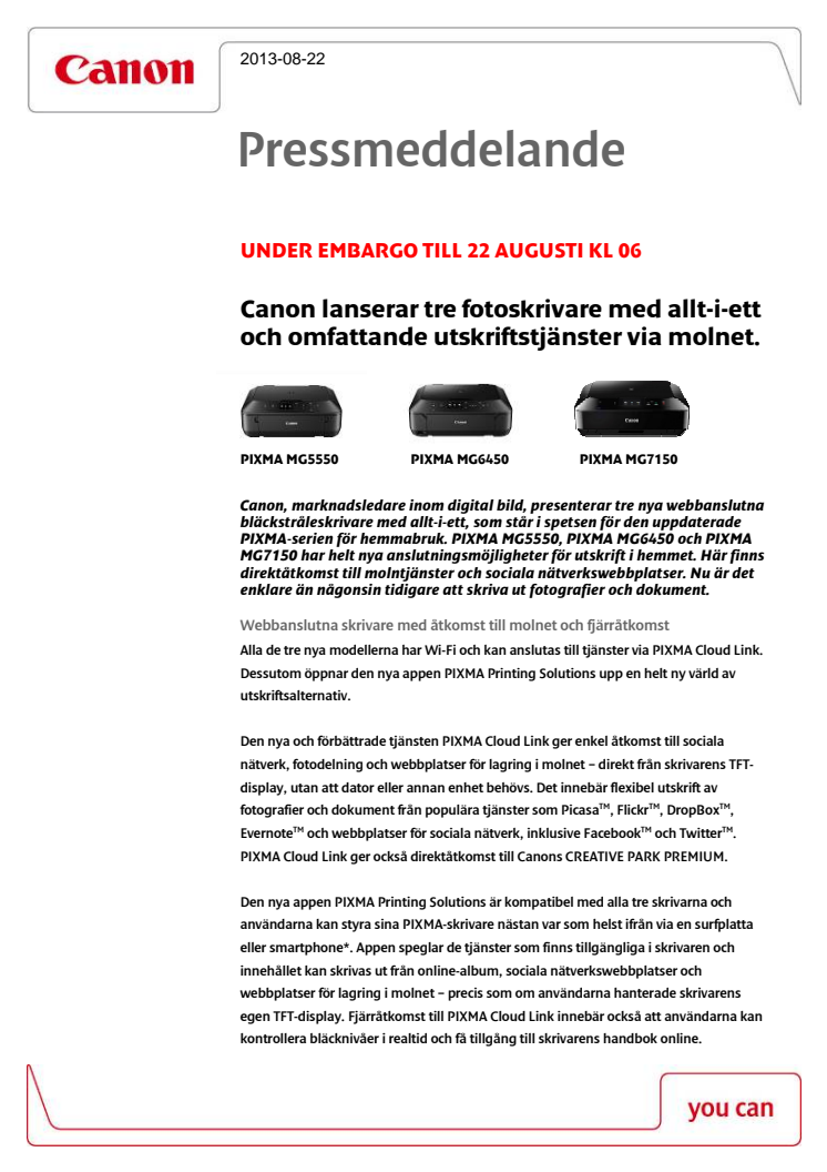 • Canon lanserar tre fotoskrivare med allt-i-ett och omfattande utskriftstjänster via molnet.