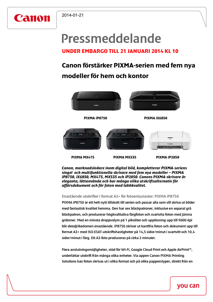 • Canon förstärker PIXMA-serien med fem nya modeller för hem och kontor