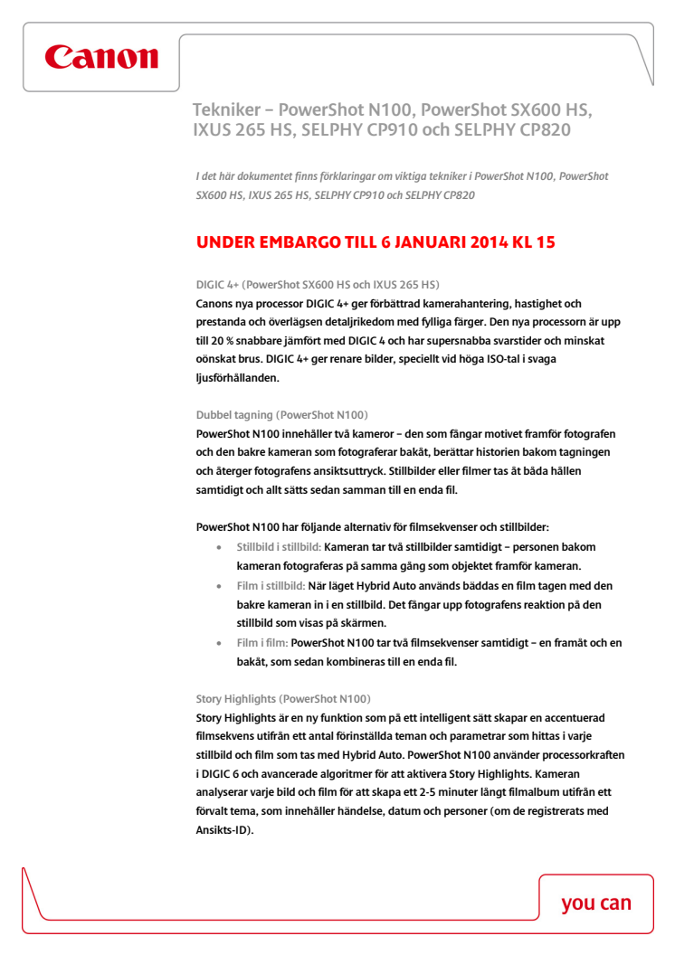 • Fånga, skapa och dela speciella minnen med Canons PowerShot SX600 HS, IXUS 265 HS, SELPHY CP910 och SELPHY CP820