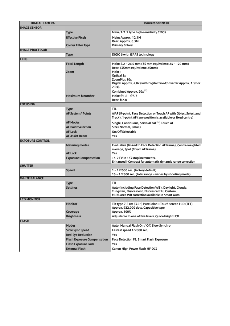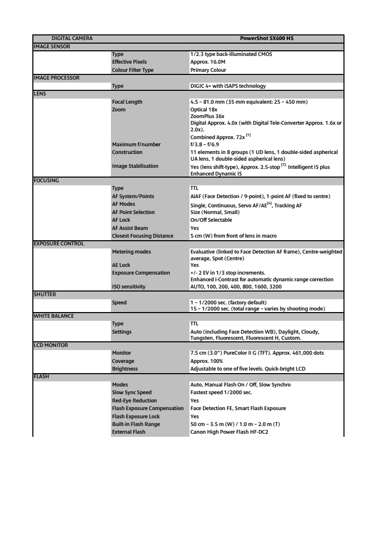 • Canon Tekniska specifikationer PowerShot SX600 HS