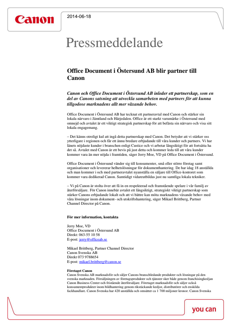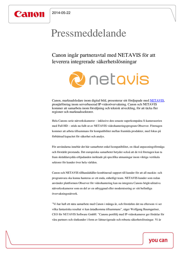 • Canon ingår partneravtal med NETAVIS för att leverera integrerade säkerhetslösningar
