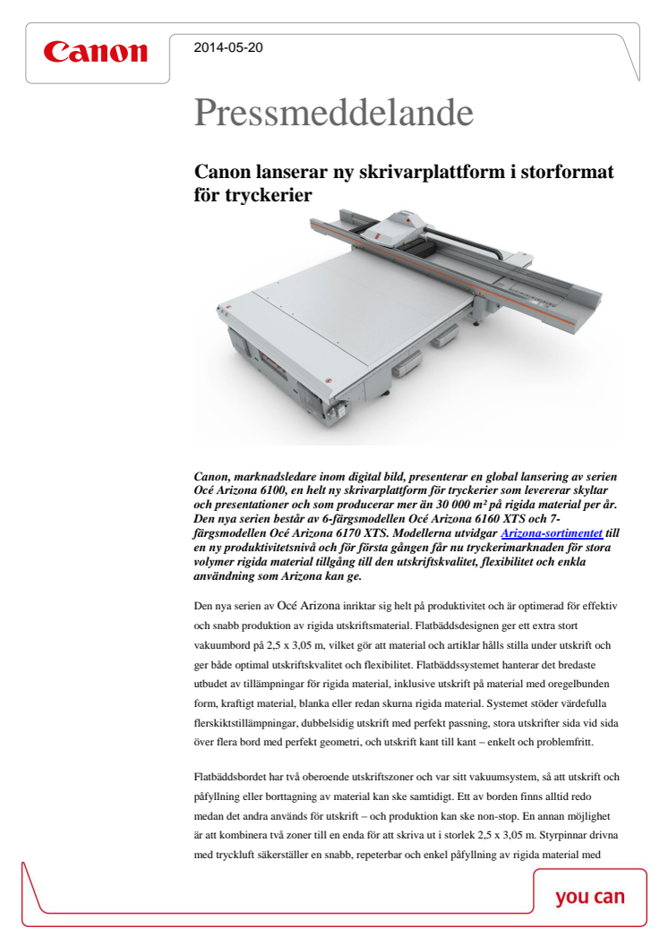 • Canon lanserar ny skrivarplattform i storformat för tryckerier