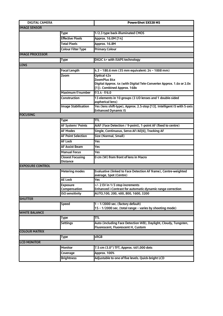 • Canon Tekniska specifikationer PowerShot SX520 HS