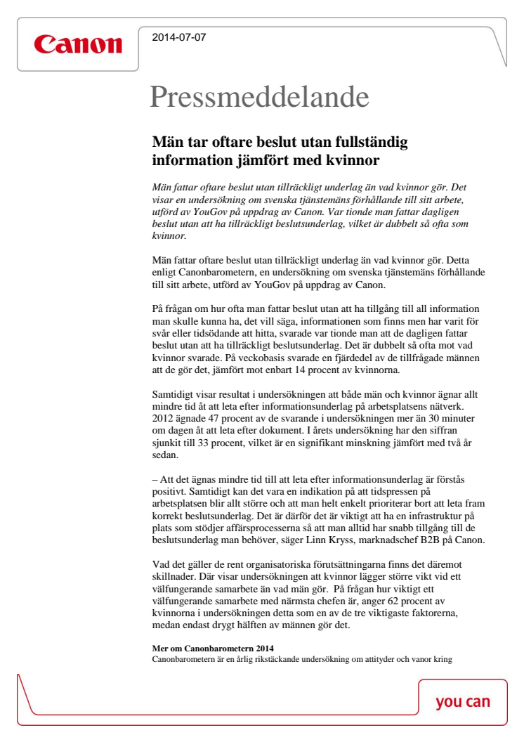 • Män tar oftare beslut utan fullständig information jämfört med kvinnor