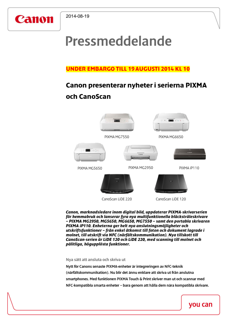 • Canon presenterar nyheter i serierna PIXMA och CanoScan
