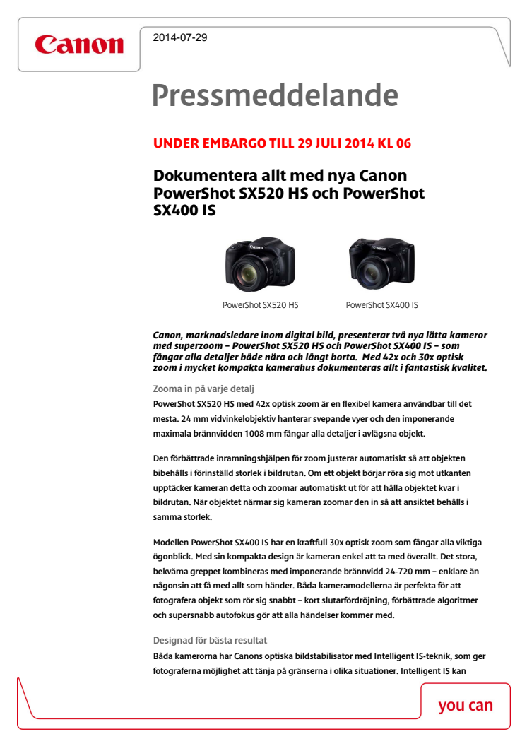 • Dokumentera allt med nya Canon PowerShot SX520 HS och PowerShot SX400 IS