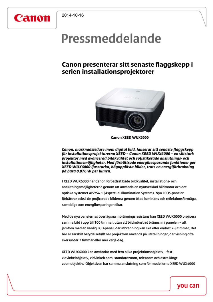 • Canon presenterar sitt senaste flaggskepp i serien installationsprojektorer