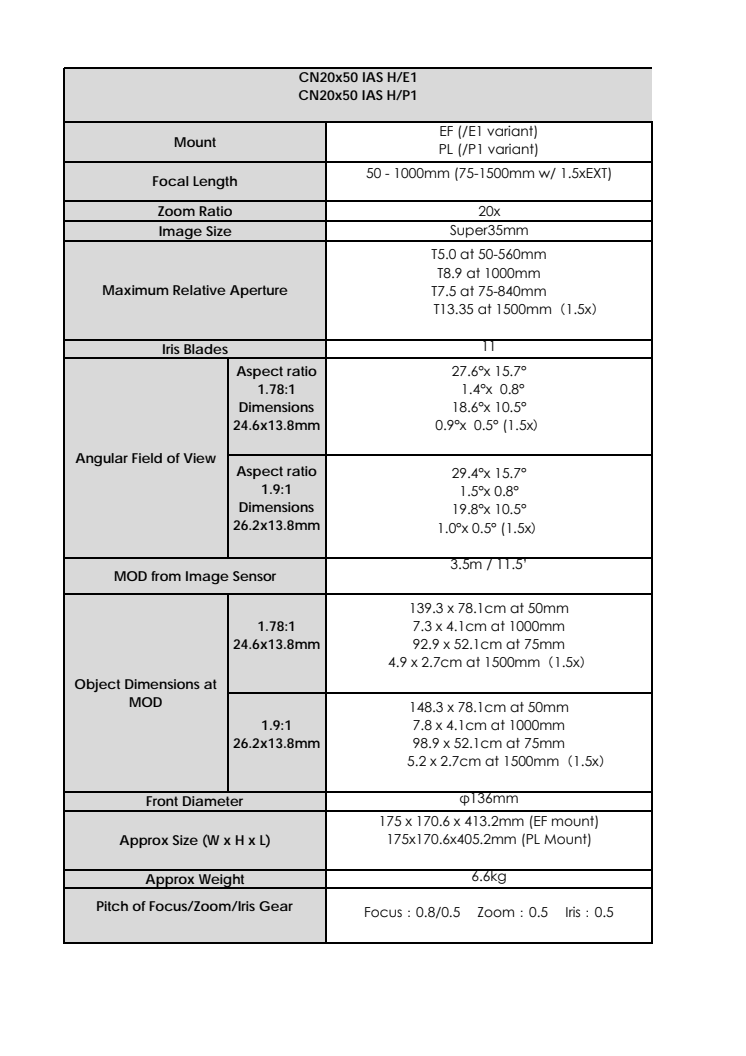 • Canon Tekniska specifikationer CN20x50