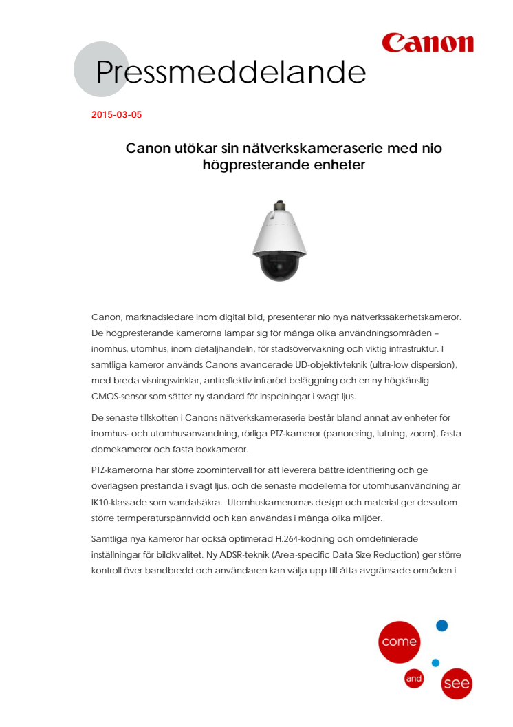 • Canon utökar sin nätverkskameraserie med nio högpresterande enheter
