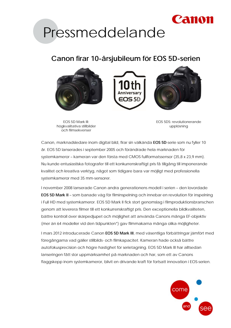 • Canon firar 10-årsjubileum för EOS 5D-serien