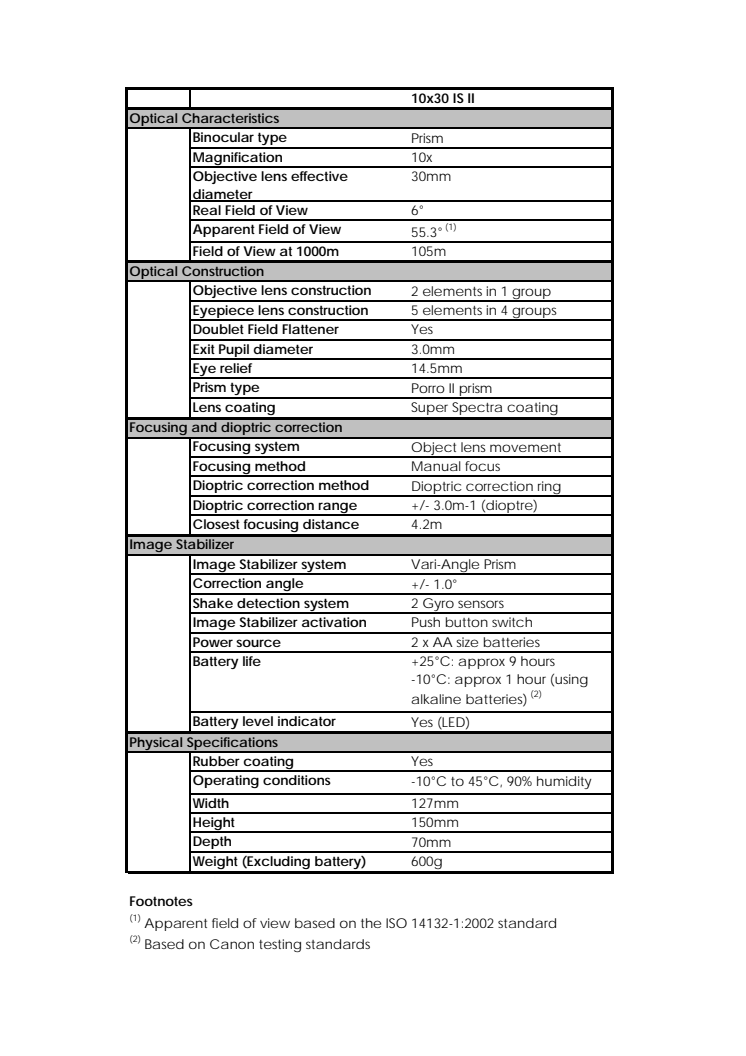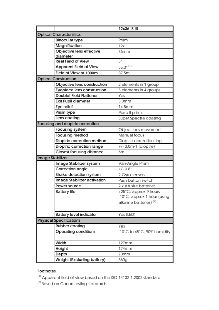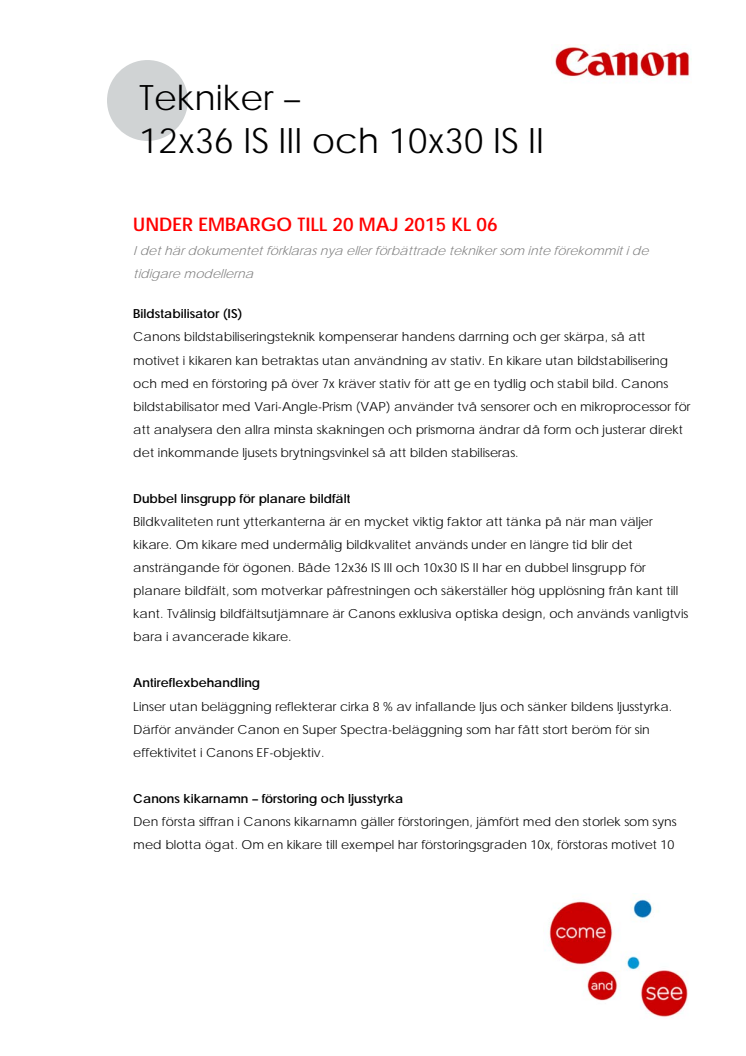 • Canon Teknisk förklaring12x36 IS III och 10x30 IS II
