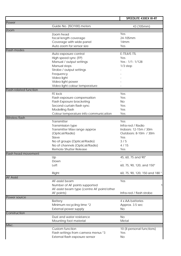 • Canon Tekniska specifikationer SPEEDLITE 430EX III-RT