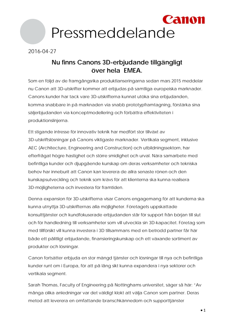 • Nu finns Canons 3D-erbjudande tillgängligt över hela EMEA.