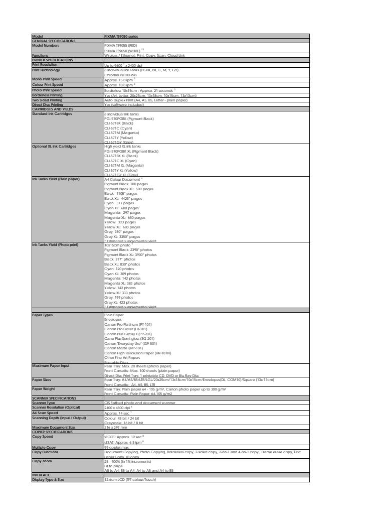 • Canon Tekniska specifikationer PIXMA TS9050 serien