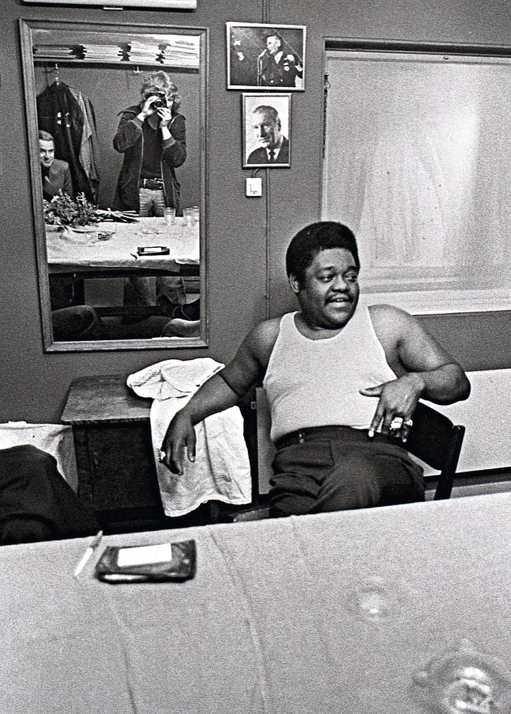 Backstage på Gröna Lund i det lilla kyffet dokumenteras Fats Domino med Canon F-1 kameran.