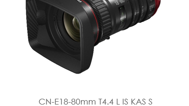 Canon, marknadsledare inom digital bild, presenterar CN-E18-80mm T4.4 L IS KAS S, ett nytt Cinema EOS-objektiv med servodrift. Det är framtaget för professionella filmare och avancerade amatörer och är ett tillskott i serien som sedan tidigare innehåller objektiven CN7x17 och CN20x50. Objektivet ger enastående resultat tack vare perfekt balans mellan hantering, precision och kvalitet.