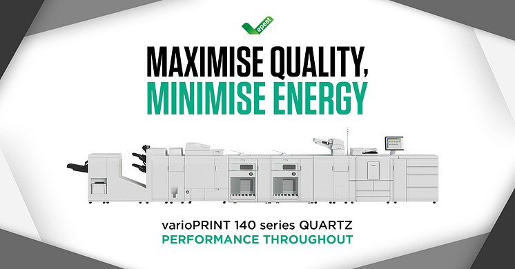 Serien varioPRINT 140 lanserades 2017 och har rönt stora framgångar på marknaden med mer än 2 200 installerade enheter i EMEA. Den nya modellen QUARTZ inriktas på mellanstora produktionsmiljöer med i genomsnitt 80 000 till 800 000 A4-utskrifter per månad. Den har hållbar konstruktion, levererar pålitligt, med konsekvent produktivitet och högkvalitativt resultat.