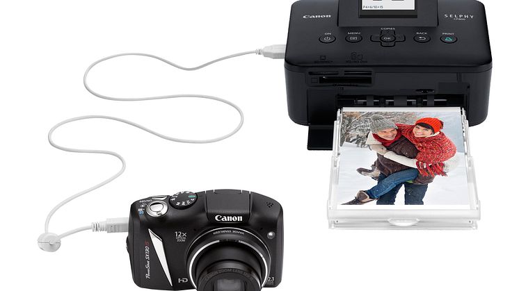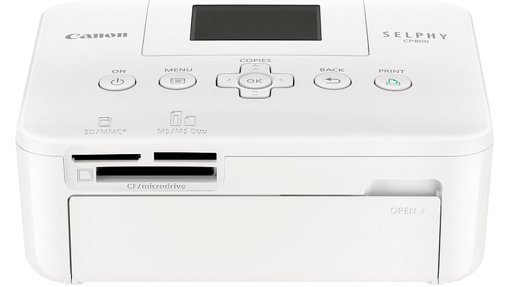 Den nya kompakta fotoskrivaren SELPHY CP800 är bekväm att använda hemma och ger utskrifter av labbkvalitet på några sekunder. Du väljer bara en bild på den vinklingsbara och tydliga LCD-skärmen, väljer sedan Skriv ut och väntar i 47 sekunder*. Den eleganta designen och den läckra svarta eller vita färgen på SELPHY CP800 är lika snygg som utskrifterna.