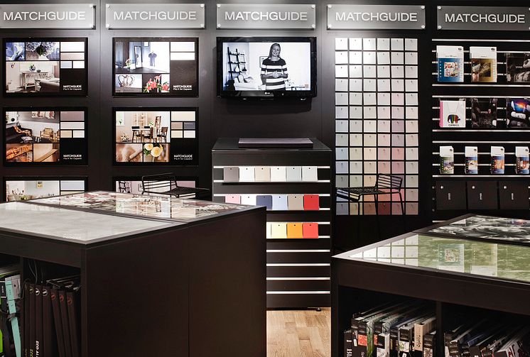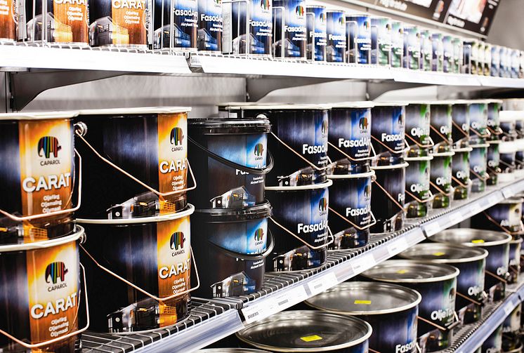 Interiörbild från Caparols butik i Upplands Väsby. Välkommen in på Kanalvägen 3B och låt dig inspireras! Besök oss gärna på www.caparolwashere.se för mer information om Caparol och våra produkter.