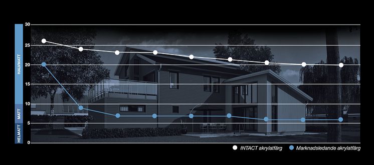 INTACT representerar en helt ny generation akrylatfärg, utvecklad för att bevara hus och byggnader vackra riktigt länge. INTACT står emot solens UV- strålar och miljöns nedbrytande effekter på ett unikt sätt. Tester i såväl laboratoriemiljö som på fältet visar att INTACT behåller ursprungsglansen bättre än någon annan akrylatfärg på marknaden. (www.caparolwashere.se)