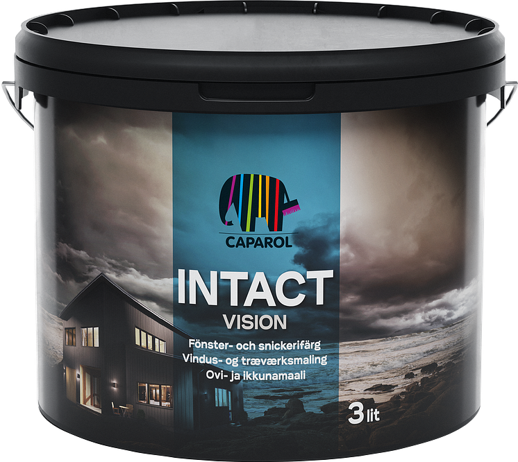 Emballagebild för Caparols fönsterfärg Intact Vision som lanserats i mars 2024.