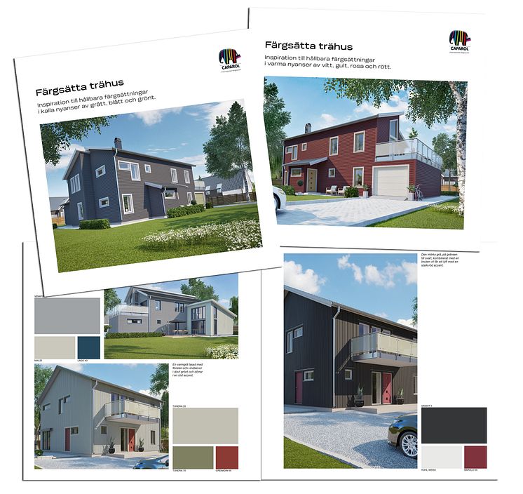 Två nya färgkartor från Caparol med inspirerande färgsättningsförslag för i första hand träfasader. Naturligtvis kan färgsättningarna användas även på andra ytor. De två nya inspirationsfärgkartorna är uppdelade i kalla och varma färgsättningar. De kalla utgår från kulörer i grått, blått och grönt medan de varma i huvudsak baseras på vitt, rött och gult. (www.caparolwashere.se)