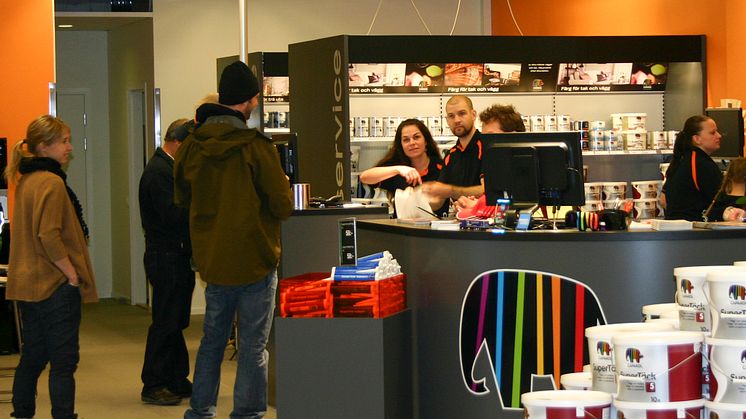 Förutom att Matte fanns i butiken så lockades besökarna med erbjudande om halva priset på all Caparol färg. Det var tidvis riktigt trångt i butiken under öppningsdagen men humöret var på topp hos såväl personal som kunder.