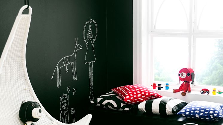 Dessutom fungerar färgen utmärkt som skoltavelfärg! Måla en hel vägg i barnrummet och låt barnen dekorera fritt med skolkritor.