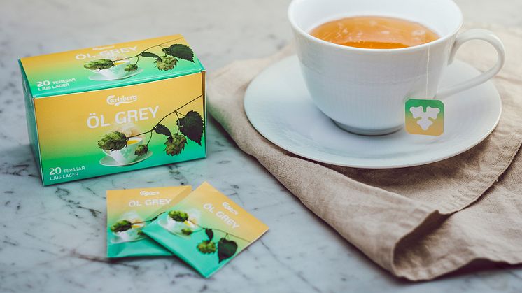 Carlsbergs Öl Grey kommer i tepåsar och tillreds som ett vanligt te:
