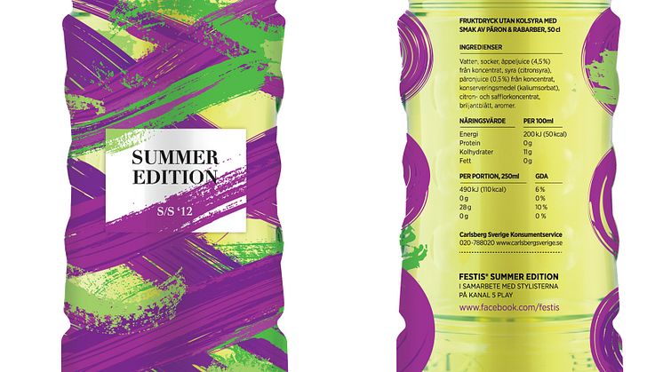 Till sommaren är det premiär för den nya färgsprakande Festis Summer Edition som har en personlig och egen stil. Flaskan har ny design framtagen i samarbete med Kanal 5:s Stylisterna och är inspirerad av sommarens make-up trender. Smaken är pear/rhubarb – en ny mix av svenska klassiker som starkt påminner om sommar. Festis Summer Edition finns att köpa exklusivt i servicehandeln mellan den 1 juni och 31 augusti 2012.
