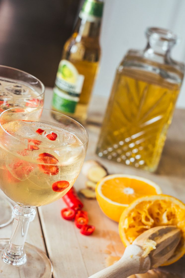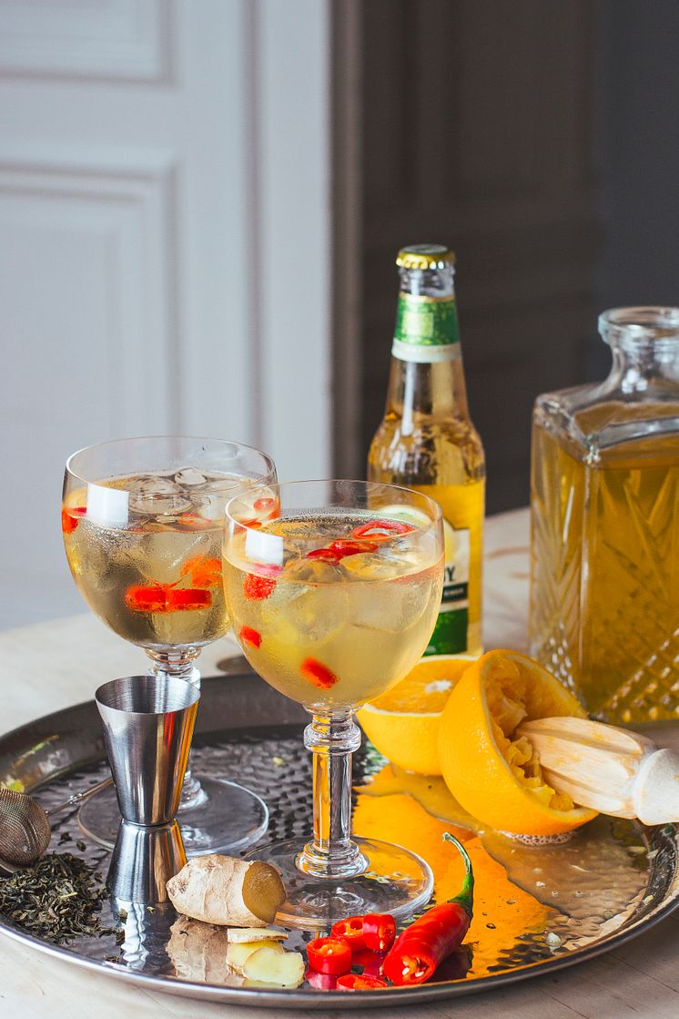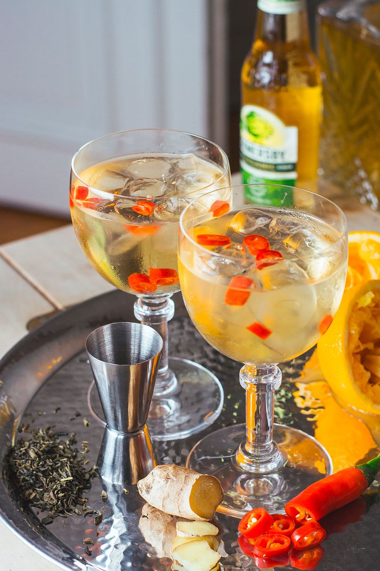 Fyll ett vinglas med is.Häll på hälften kallt grönt te och hälften. Somersby Organic Apple. Krydda med chili, färsk ingefära och lite pressad apelsin.