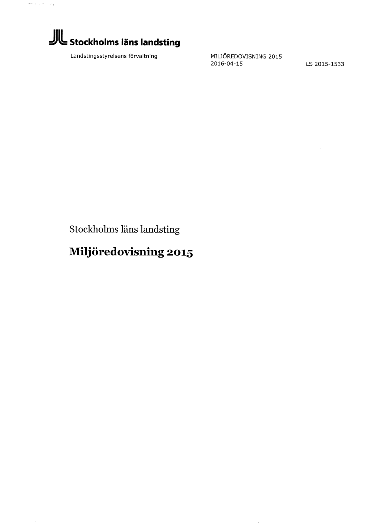 Politiskt antagna miljöredovisningen för SLL år 2015.