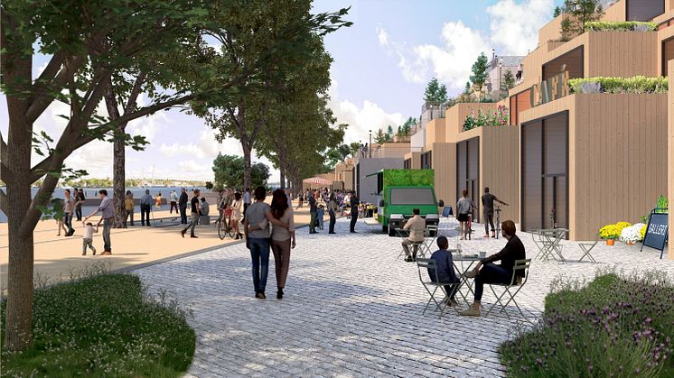 – På taket till byggnaderna vill vi anlägga en gångväg som sträcker sig hela vägen från Slussen till Fåfängan vilket skapar ett sammanhängande stråk genom området. För att stärka områdets koppling mellan stad och vatten vill vi också anlägga trapper som leder ner från klippan till Stadsgården. Dessa ansluter till olika noder vid vattnet. En grön park, en småbåtshamn, ett kallbadhus och en scen, säger Jonas Naddebo.