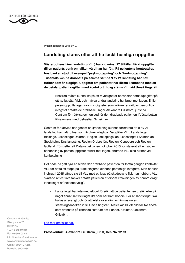 Landsting stäms efter att ha läckt hemliga uppgifter