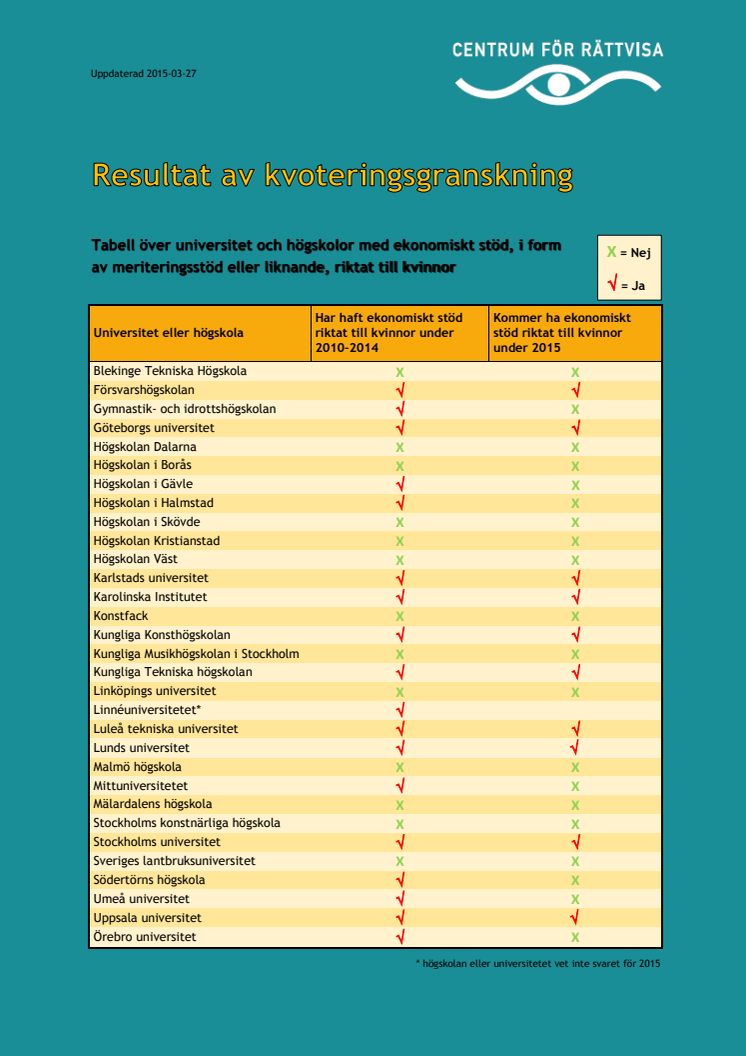 Resultat kvoteringsgranskning, uppdaterad 2015-03-27