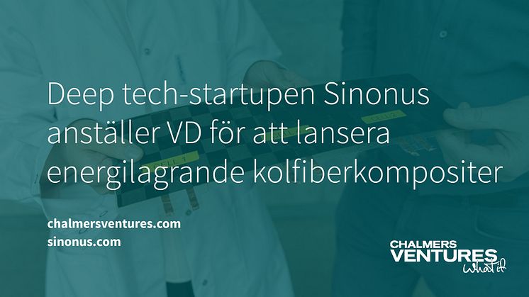 Chalmers Ventures nya portföljbolag Sinonus, en avknoppning från Chalmers tekniska högskola, har anställt tidigare Maurten- och SKF-chef som ny VD. Företagets unika kolfibermaterial kan lagra elektrisk energi, vilket möjliggör energilagring i befintliga strukturer för en mängd olika industrier – från elbilar till flygplan.