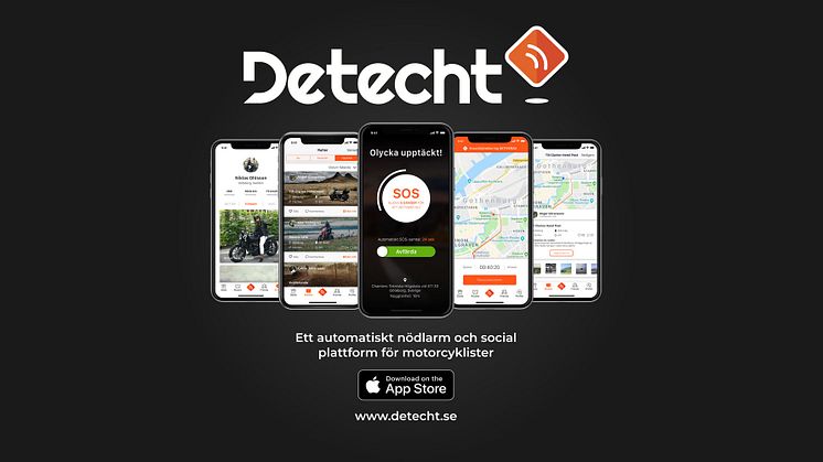 Start Up-bolaget Detecht har utvecklat en app med ett automatisk säkerhetslarm. Målet är att minska larmtiden med 50 % från det att en motorcykelolycka skett tills ambulansen anländer.