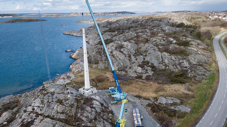 • Det första vindkraftstornet i trä har rests utanför Göteborg