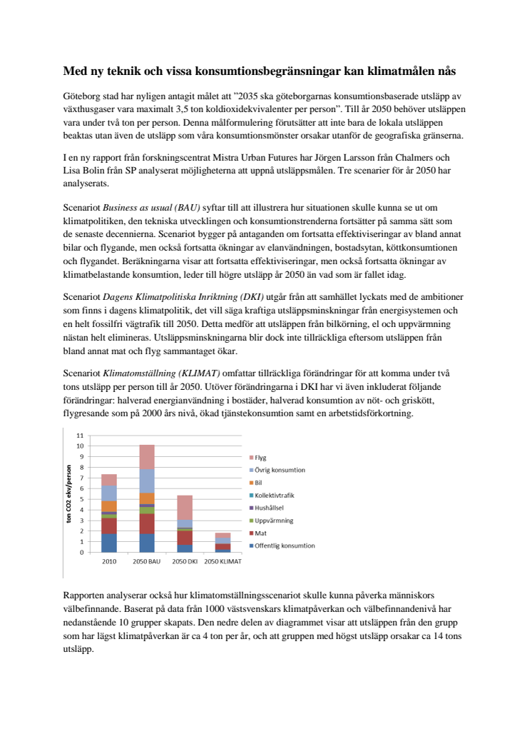 Faktablad, klimatrapport ur konsumtionsperspektiv